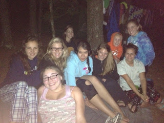 This is a picture of the girls at their campsite!